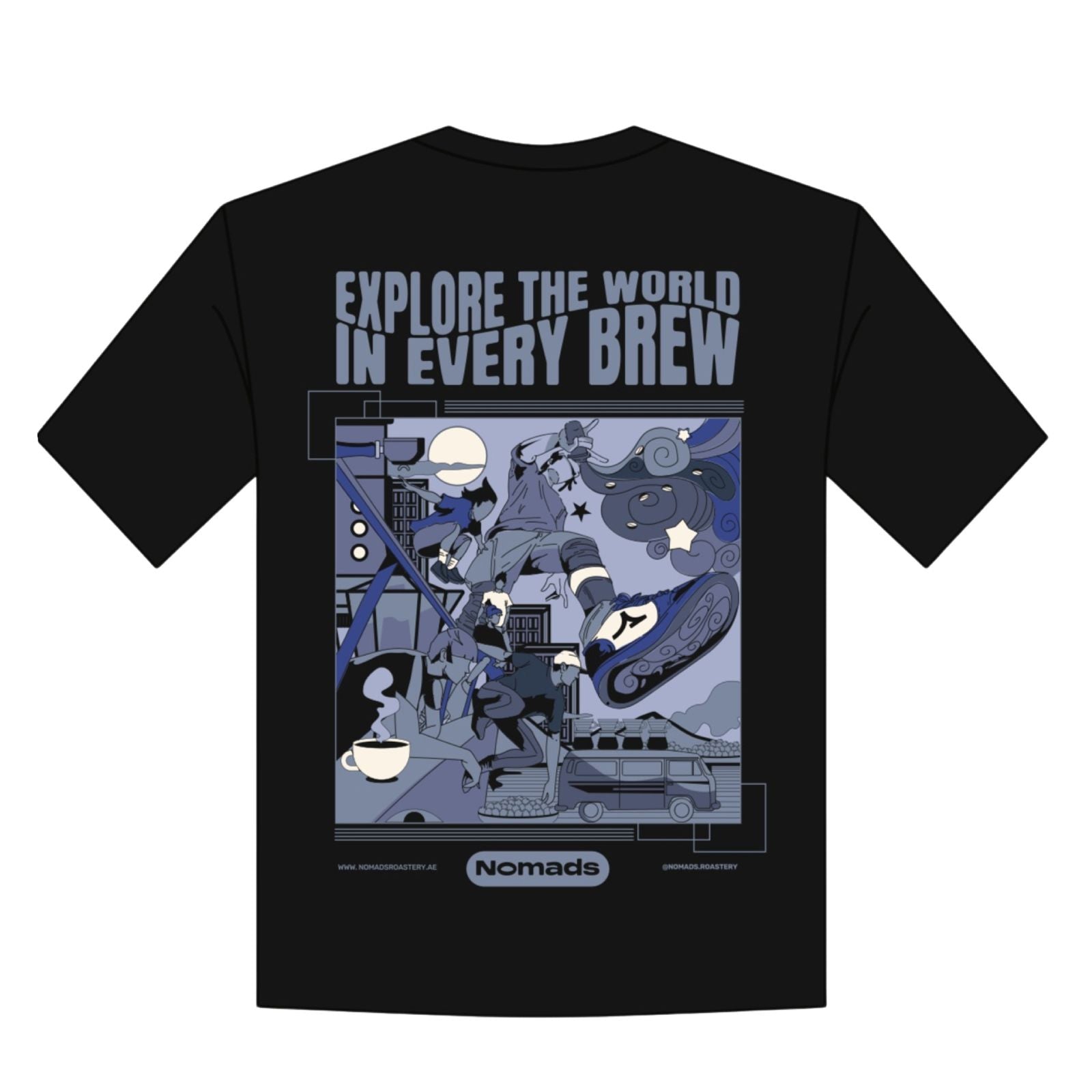 At Nomads Roastery, coffee is more than a drink, it’s a lifestyle. We’re proud to introduce our exclusive merch collection, designed for coffee lovers who embrace the spirit of adventure and discovery. Our shirts feature premium fabrics and designs inspired by the nomadic spirit and coffee culture, each piece celebrating the journey from bean to cup.