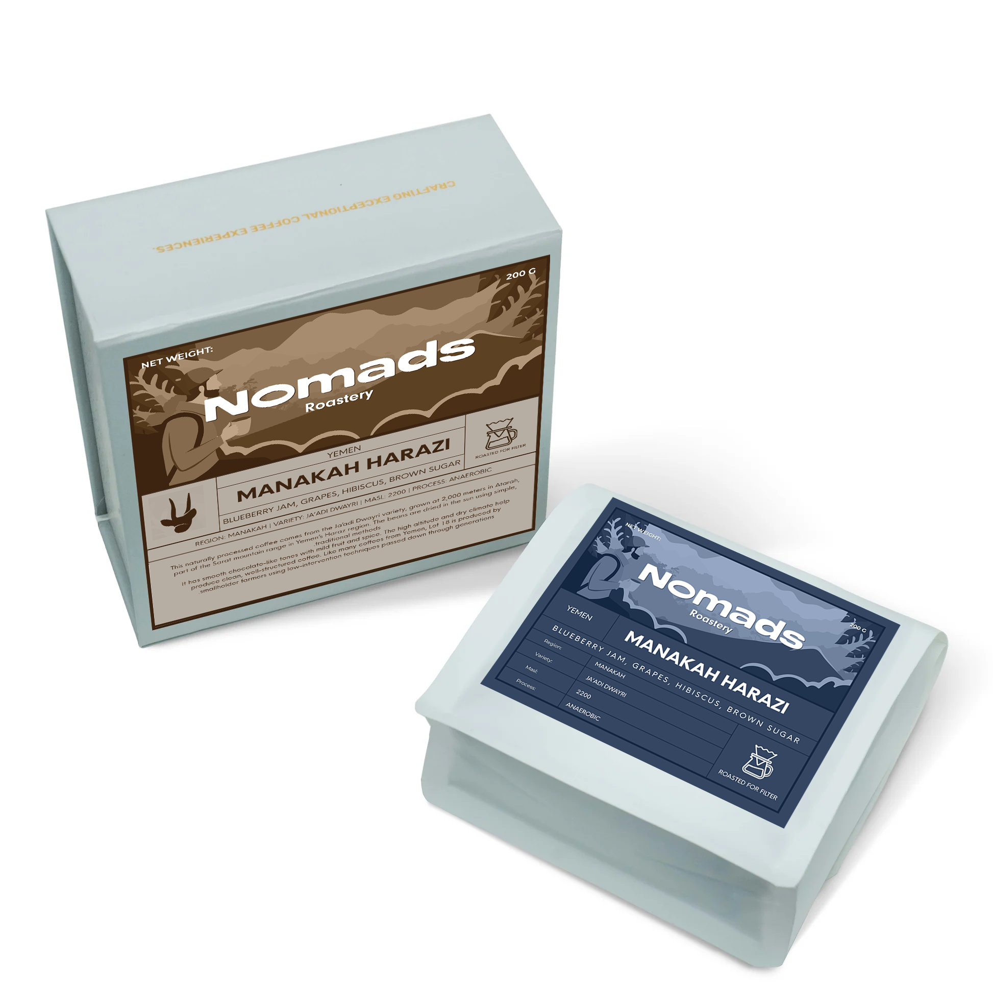Grown at 1,600–1,800 meters in Manakah, a village in Yemen’s Haraz region, this coffee comes from the Ja’adi Dwayri variety and is processed using a 5-day anaerobic fermentation. This method enhances sweetness and depth.